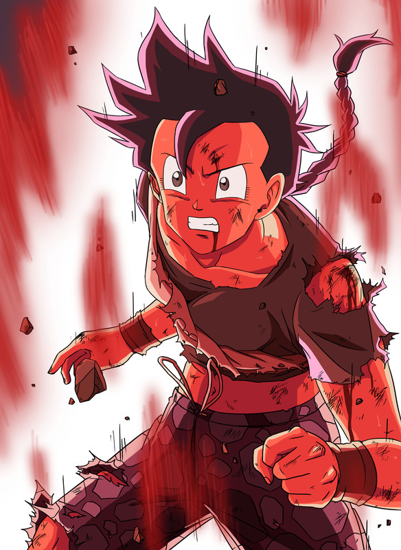 Videl szinte kirobban a romokból és egy hatalmas vörös burok veszi körbe.