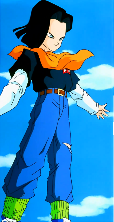 17-es megakarja támadni Vegita-t mikor Gohan ott terem és lerúgja a földre.