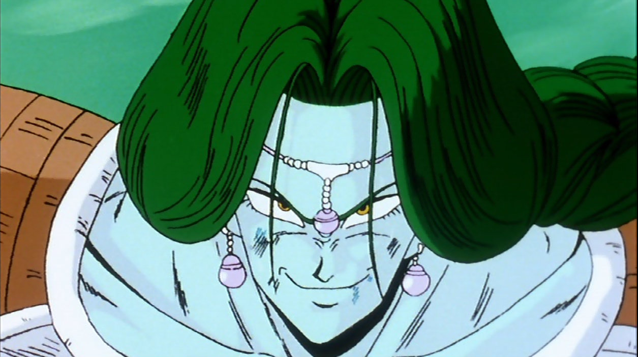 Zarbon szeméből egy lézert lőtt Gohan-ra aki kitért előle épp csak karcolta az arcát amiből a vér elkezdett lefolyni a szája felé.